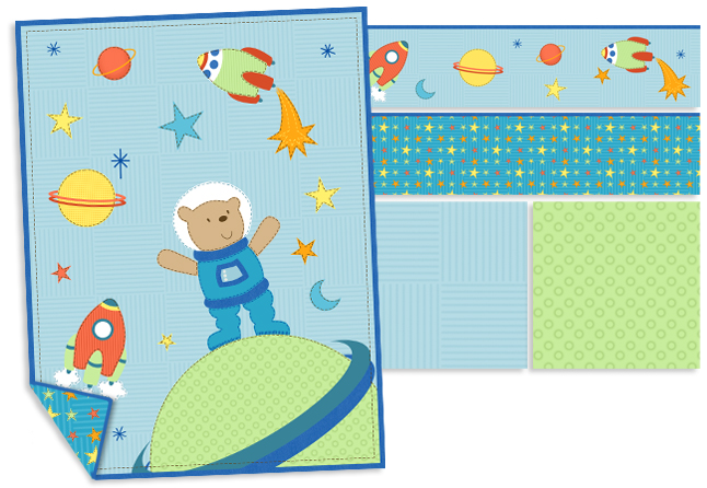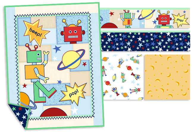 Client: Springs Project: Robot Crib Set Includes: Original Artwork, Quilt, Bumper, Crib Skirt & Sheets